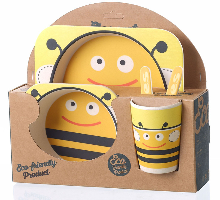 Veldig stilig og morsomt barneservise i 5 deler som hovedsakelig er laget av bambus pulver- en ny type miljøvennlig material. Det er en spennende og stilig løsning for folk som ønsker å ha en grønnere livsstil.